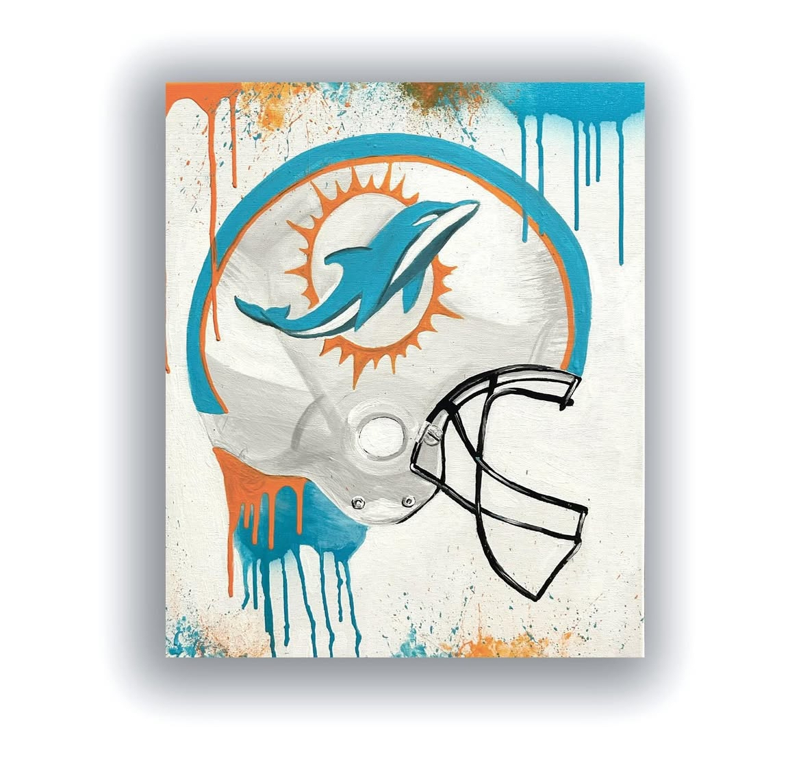 FINS ON FIRE Posted on May 5, 2024March 4, 2025 Abstract acrylic and spray paint canvas. Football helmet for the Miami Dolphins.